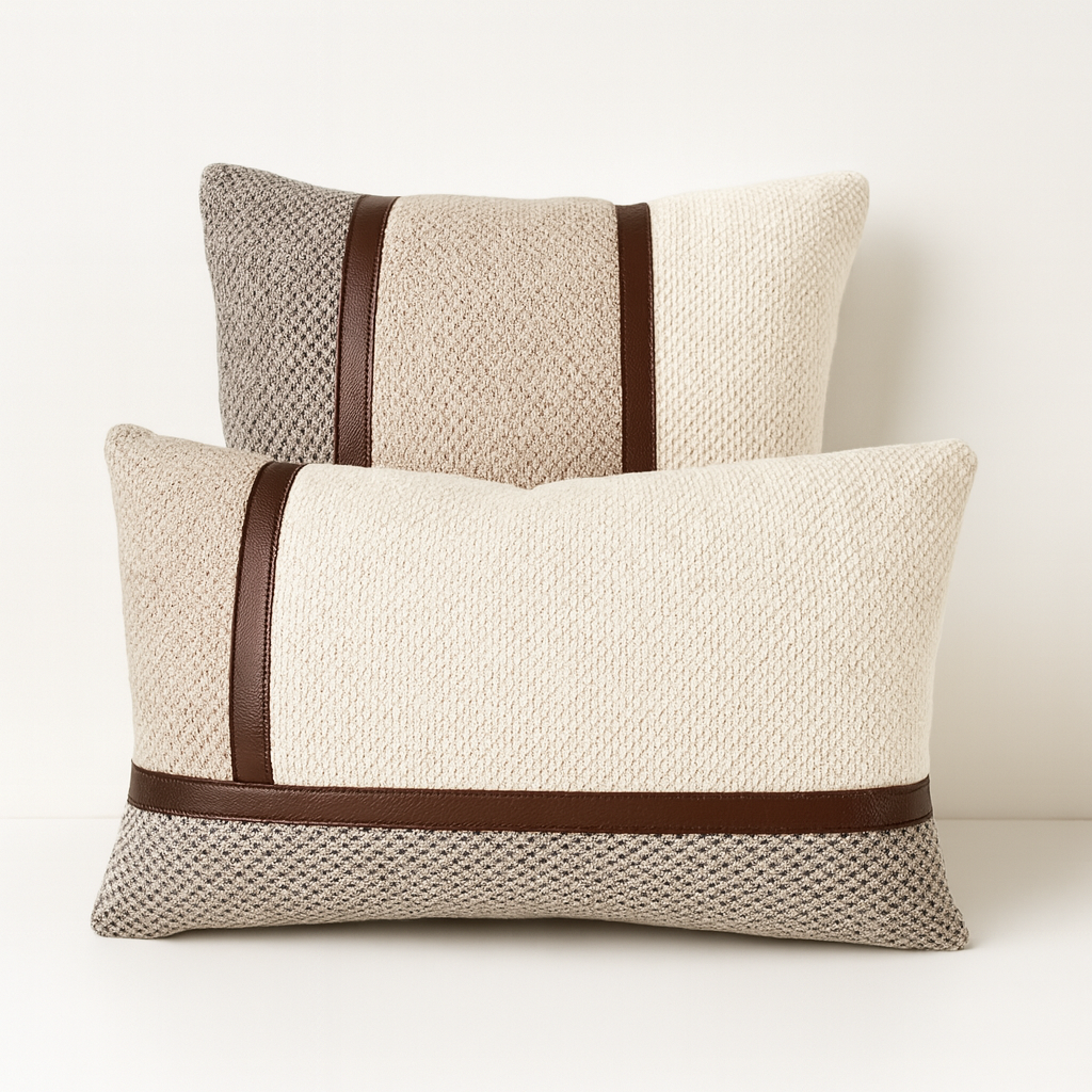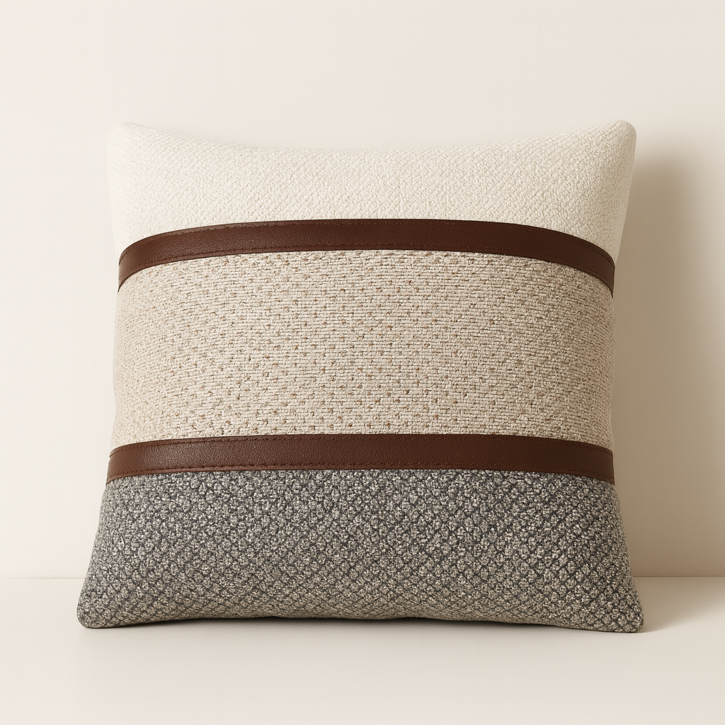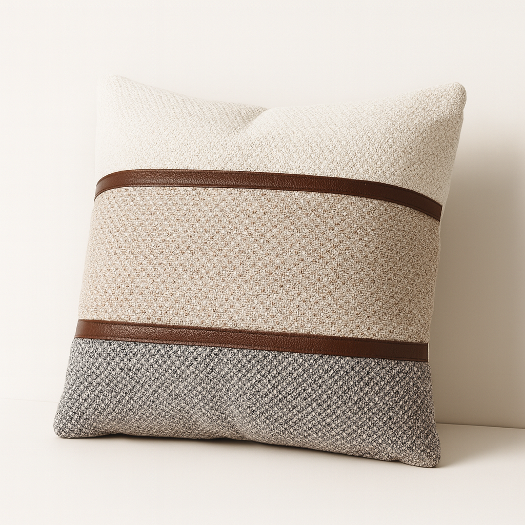 Renueva el estilo de tu hogar con este elegante cojín decorativo de 42x42 cm, perfecto para añadir un toque moderno y sofisticado a cualquier espacio. Su diseño único combina texturas suaves y detalles en cuero, lo que lo convierte en un complemento ideal para salas de estar, dormitorios, o cualquier rincón que necesite una actualización decorativa.
