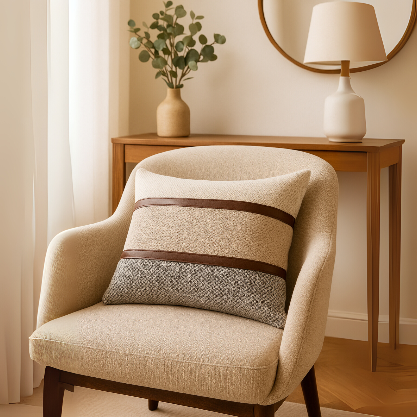 Cojín Decorativo con Relleno 42x42 cm Detalles en Cuerina