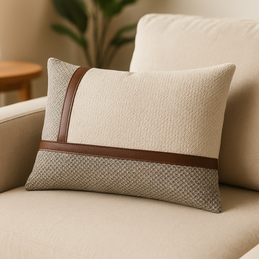 Cojín Decorativo Rectangular de 28x50 cm con Detalles en Cuerina: Estilo y Comodidad para Tu Hogar