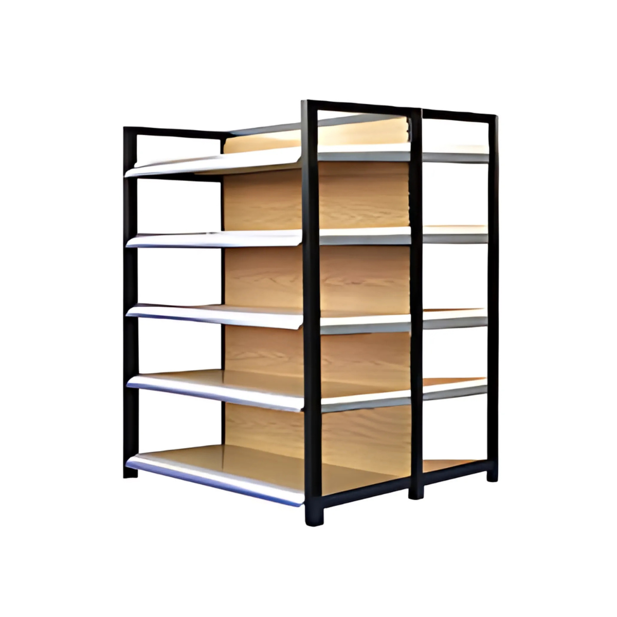 Optimiza tu espacio de exhibición con esta Estantería Góndola de diseño robusto y elegante, ideal para negocios que buscan funcionalidad y estilo. Su acabado en color madera estampado le da un toque atractivo, perfecto para resaltar tus productos.