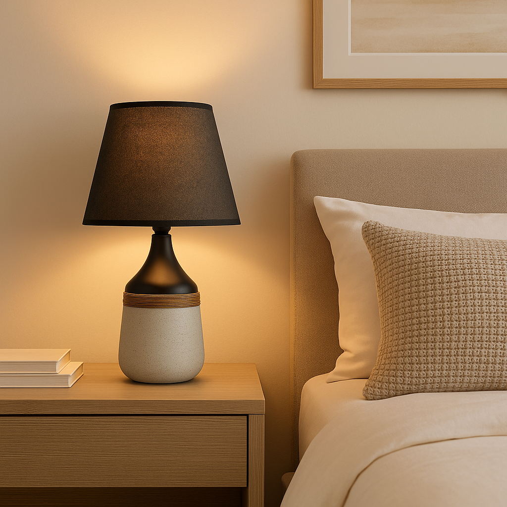 Esta lámpara de noche con detalles en cuerda natural es la opción perfecta para quienes buscan un equilibrio entre estilo y funcionalidad. Ideal para crear un ambiente acogedor y moderno, sin sacrificar el carácter práctico que tu espacio necesita.