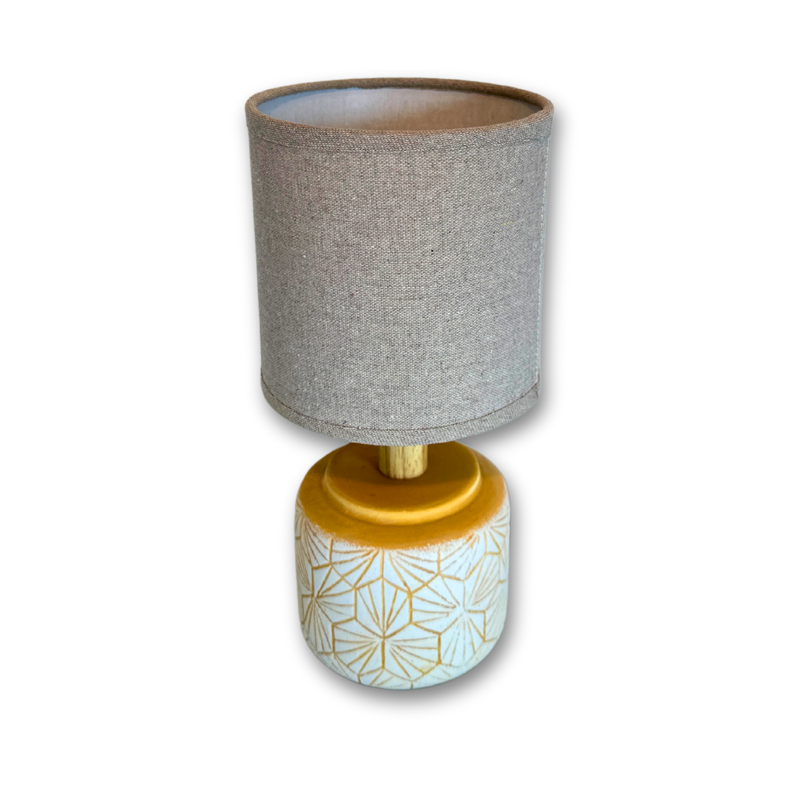 Lámpara De Velador o Mesa de Noche Minimalista Cerámica y Madera