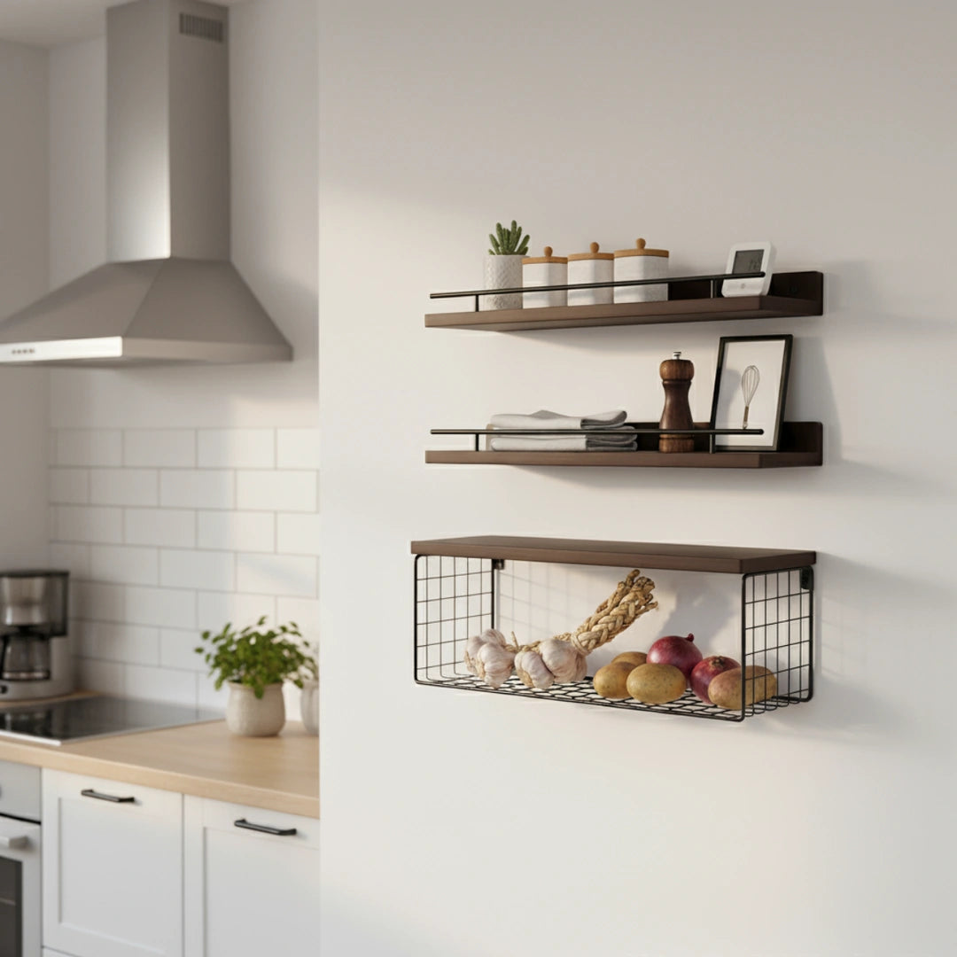 ¡Transforma tus espacios con este elegante set de repisas flotantes de madera y estructura metálica negra! Perfectas para baño, cocina, lavadero o incluso tu home office, estas repisas no solo organizan, sino que decoran con un toque moderno y funcional.