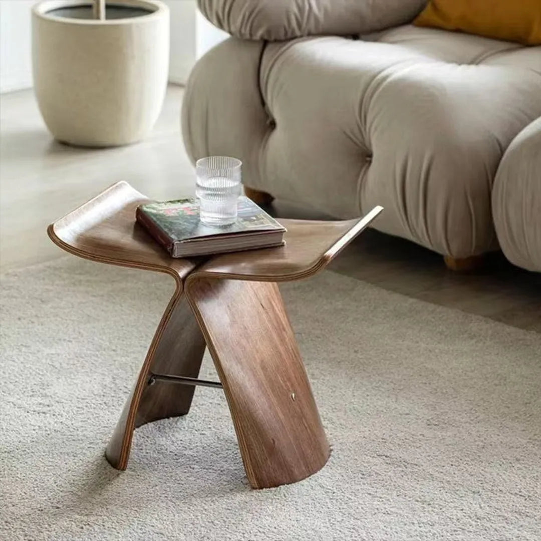 Este taburete mariposa es ideal para usar como asiento auxiliar, mesa lateral o elemento decorativo en: